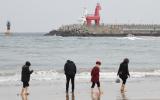 [한라일보] 26일 제주시 이호테우해수욕장을 찾은 관광객들이 바닷물에 발을 담그며 걷고 있다(사진 위). 이호테우해변에서 보트를 타며 초봄을 즐기는 관광객들(사진 아래). 이상국기자