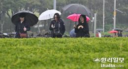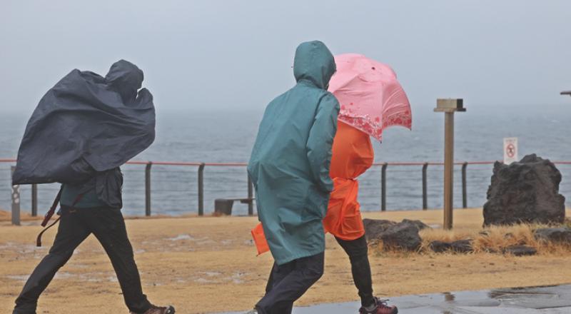 세차게 내리는 봄비 맞으며 제주관광