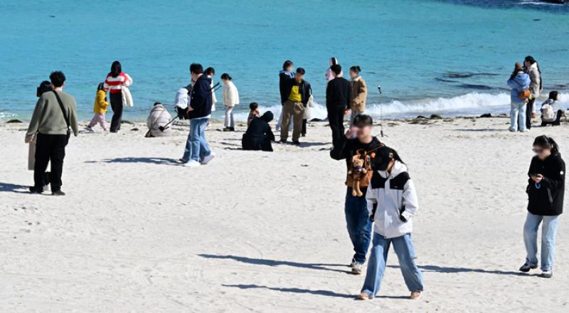 제주 겨울바다 즐기는 관광객들
