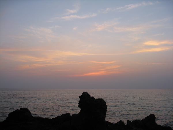 애월 한담 바닷가에 마치 누런소의 털처럼 흩 뿌려지는 불타는 노을.(5월31일 19:31분에 촬영)/사진=박우철 시민기자