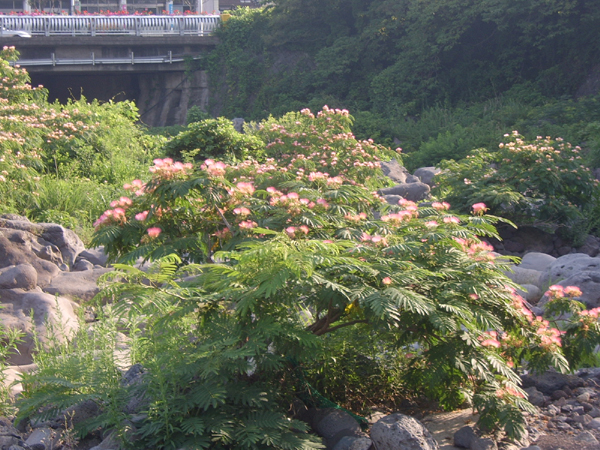 지금은 마른 장마라 그런지 냇물 대신 자귀꽃 향기가 한천을 덮고있다.
