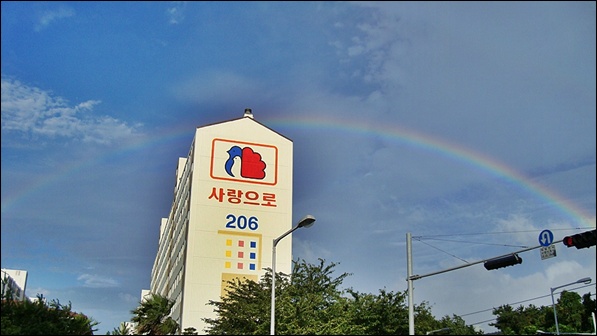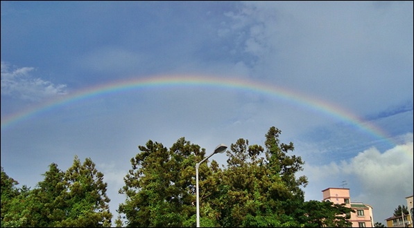 14일 오후 6시 25분경 신제주 우편집중국 부근에서 동쪽 하늘에 핀 무지개를 보았습니다.