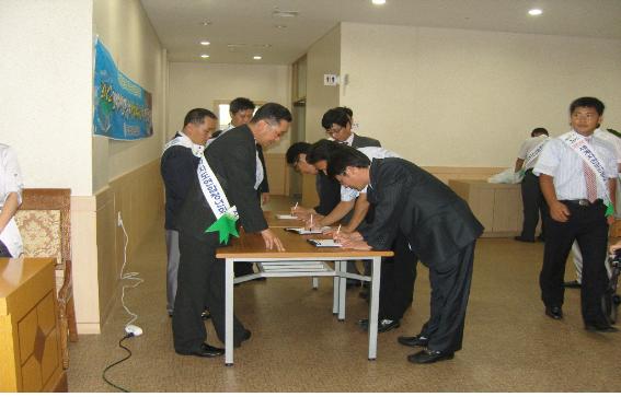 부산광역시연합청년회 창립 기념일에 부산해군회관에서 서명을 받고 있는 모습..