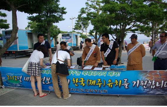 부산시민들이 서명운동에 동참하고 있는 모습..