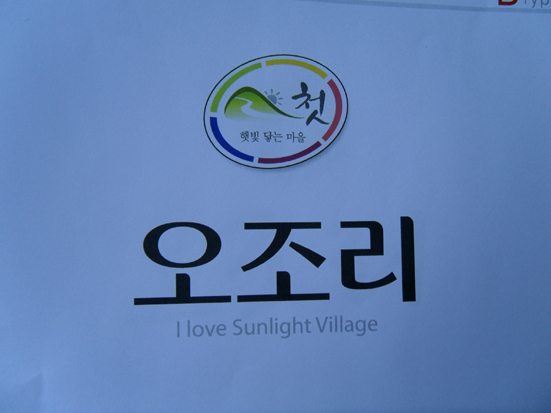 오조리 마을의 '식산봉'과 '일출' 그리고 '올레길'을 표현하였습니다. 바깥부분의 테두리는 오조리마을을 상징하고 각 각의 테두리 사이에 빈 공간은 오조리마을의 다섯가지 빛을 나타냈습니다.그리고 로고안에는 식산봉과 올레길을 표현 하였고, '첫 햇빛 닿는 마을'이라는 슬로건을 사용하여 오조리 마을을 표현 하였습니다.