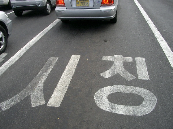 관광객과 도민들이 많은 이용하는 해태동산 사거리 도로에 표기된 시청으로 가는 방향을 표시한 노면 표시에 '시청'을 '시칭'으로 잘못 표기돼 있다./사진=박은경 시민기자
