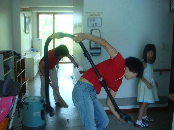 실내청소를 하는 원더풀 회원들
