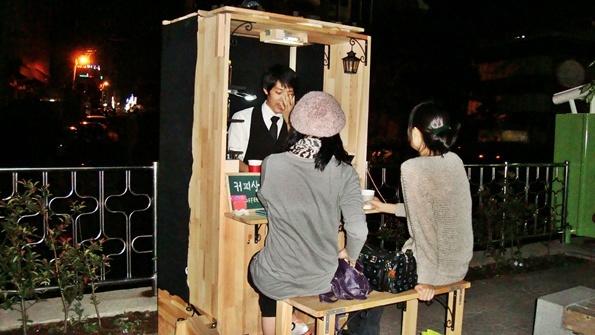 ◆ 어둑어둑 땅거미가 지면 차려지는 이색카페. 의자가 딱 두 개뿐이다.<사진=최찬규 시민기자>