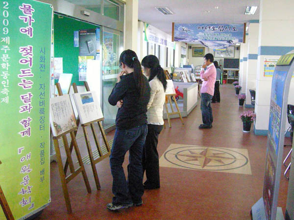 잠시 일손을 멈추고 풍요로운 만추에 시화를 감상하는 아름다운 여인들../사진=박우철 시민기자