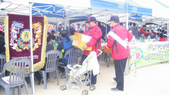 자기 구에서 감귤 홍보을 도와주는 부산시 청년 회원들..