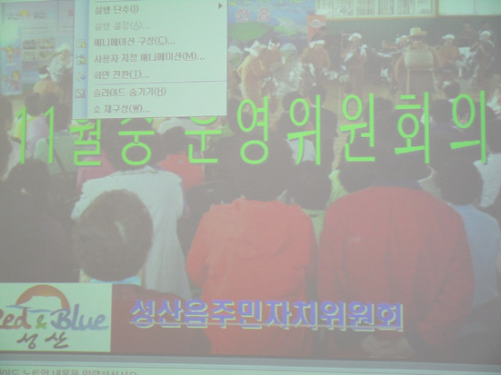 11월중 주민자치 운영위원회을 개최하여 주요 사업에 대하여 논하고 있다.
