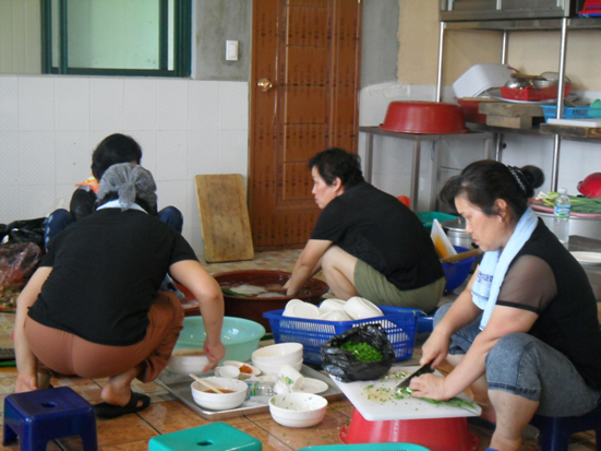 오조리 부녀회원들이 무더운 날씨에 주방에서 점심 준비을..