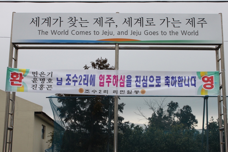 도내 농촌지역 인구증감이 지역별로 편차가 큰 가운데 제주시 한경면 조수2리 마을 회관 현수막 걸이대에 걸려 있는 귀농인들을 환영하는 문구의 현수막이 이채롭다.