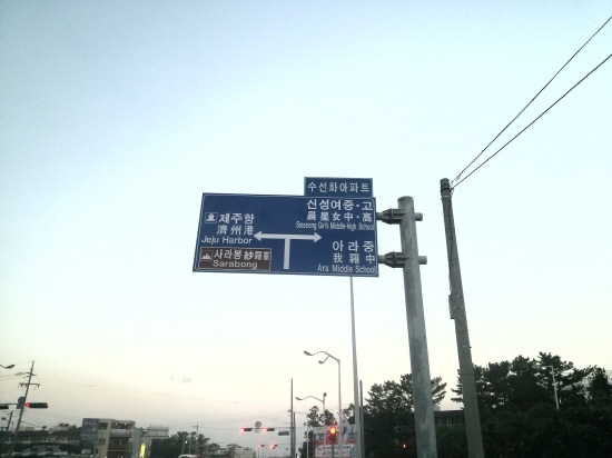 연북로 막은내-번영로 구간이 지난달 27일 개통되었으나, 연북로 화북방향의 표지판과 영평동에서 제주항으로 내려가는 길의 표지판은 아직 그대로이다.