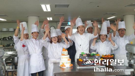 지난달 2015제주국제감귤박람회에서 열린 캡스톤 디자인 경진대회에서 최우수상을 수상한 제주관광대학교 관광호텔조리계열의 베이커리 동아리 '파티쉐'.