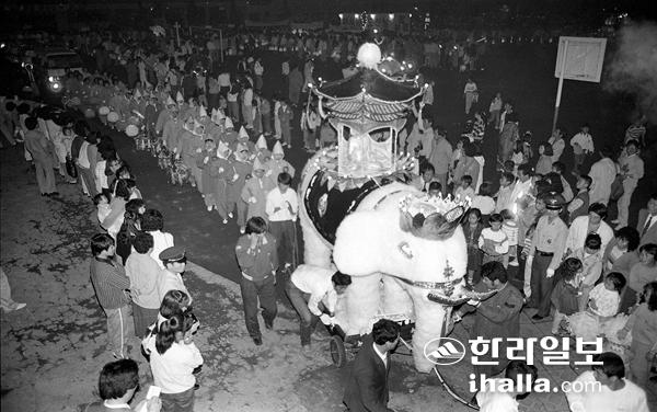 1989년 부처님오신날 제등행렬. 한라일보DB