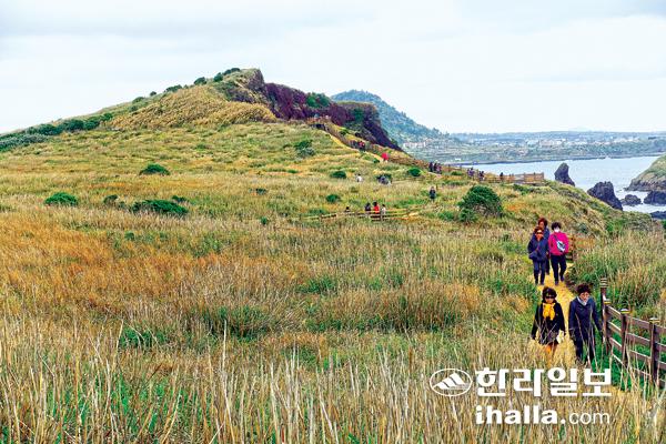 지난 26일 열린 2019 제주도 세계지질공원 수월봉 트레일 행사에서 탐방객들이 자구내포구~장군바위~차귀도 등대로 이어지는 차귀도 코스를 탐방하며 차귀도의 지질과 역사를 알아보는 시간을 가졌다 . 김현석기자