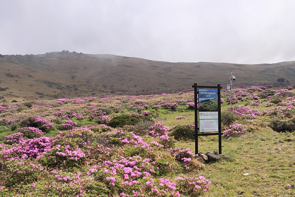 장구목에서 둘레베기를 한 곳의 사진이다. 철쭉이 핀 것을 확인할 수 있다.