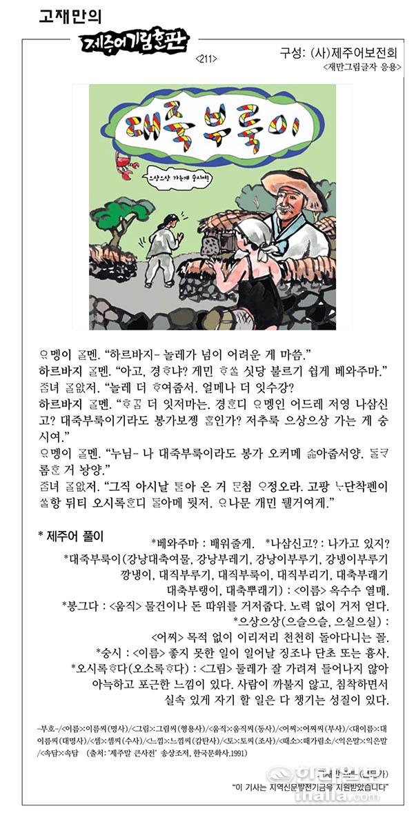 [고재만의 제주어기림혼판] 제주어 풀이(211)
