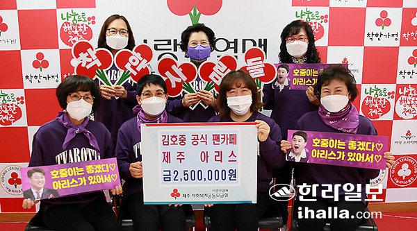 김호중 공식 팬카페 ‘제주 아리스’가 기념촬영을 하고 있다.