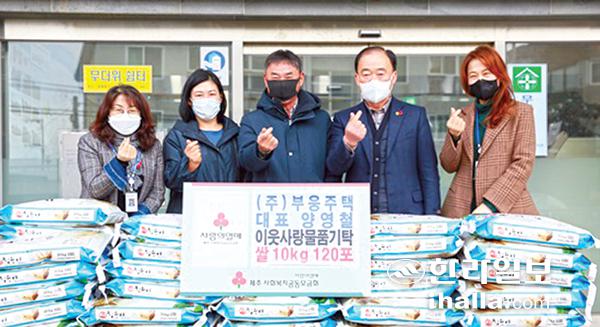 (주)부웅주택(대표 양영철)은 지난 5일 화북동주민센터에서 설 맞이 사랑의 쌀을 제주사회복지공동모금회(회장 김남식)에 기탁했다.