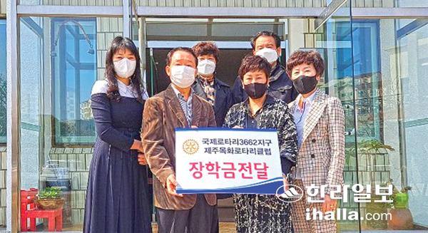 제주목화로타리클럽(회장 정현미)은 지난 13일 홍익아동복지센터(시설장 허철훈)를 방문해 100만원의 장학금을 전달했다. 홍익아동복지센터는 이날 전달된 장학금을 고등학생 1명, 대학생 1명을 선정해 지급할 예정이다.