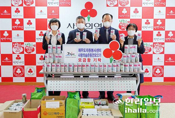 제주특별자치도자원봉사센터(센터장 고태언)는 15일 제주사회복지공동모금회(회장 김남식)를 방문해 '사랑의 숨은 동전 모으기 캠페인'으로 마련한 모금함 316개를 기탁했다.