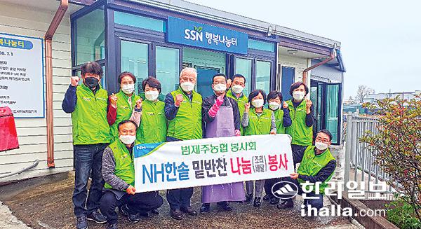 농협제주지역본부(본부장 강승표)와 제주시농협(조합장 고봉주)은 16일 제주도사회복지협의회(회장 고승화)에서 임직원 10여 명이 참여해 온누리봉사회(회장 홍태욱)와 합동으로 'NH한솥 밑반찬 나눔 조리봉사활동'을 실시했다.