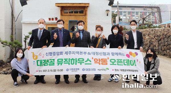 대정신협(이사장 오남필)과 신협중앙회 제주지역본부(본부장 허영진)는 지난 15일 초록우산 어린이재단 제주지역본부(본부장 김희석)를 통해 대정골지역아동센터 뮤직하우스 조성비 1000만원을 후원하고 개소식 '오픈데이'를 진행했다.