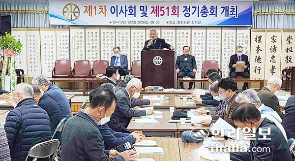 광산김씨제주도종친회는 지난 20일 제주시 연동에 위치한 광산김씨종친회관에서 2021년 제1회 이사회 및 제51회 정기총회를 개최했다. 이날 이사회는 모범 종친 표창수여가 진행됐고, 이어 열린 총회에서 지난해 결산보고와 2021 예산안, 광산김씨 제주입도 700년사 발간에 따른 내용을 승인받는 절차로 진행됐다.