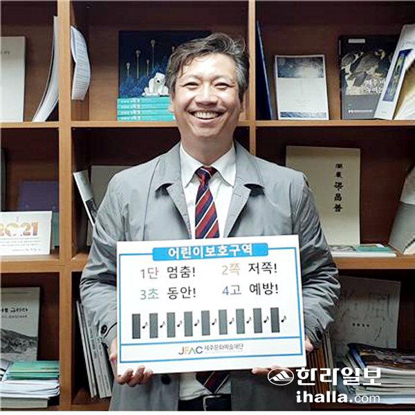 제주문화예술재단 이승택 이사장이 최근 어린이 교통사고 예방에 대한 국민적 공감대 형성 차원에서 행정안전부가 지난해 12월부터 진행하고 있는 '어린이 교통안전 릴레이 챌린지'에 참여했다. 이승택 이사장은 다음 참여자로 제주민예총 이종형 이사장, 제주도시재생지원센터 유희동 센터장, 제주테크노파크 태성길 원장을 추천했다.