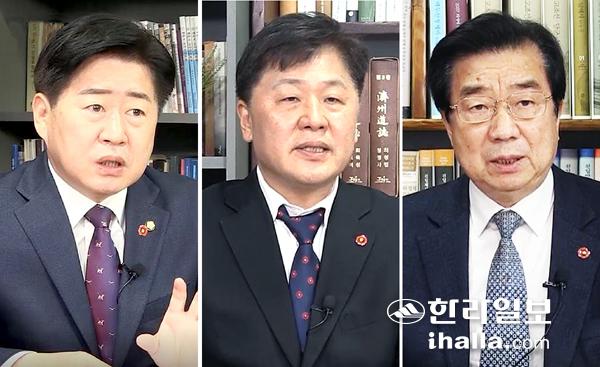 사진 왼쪽부터 오영훈 국회의원, 김동만 제주한라대학교 교수, 양조훈 제주4·3평화재단 이사장