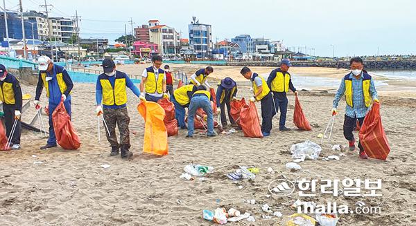 1980년 고등학교를 입학한 도내 16개 고교 동기들이 모여 비영리봉사단체를 결성한 한라팔공회(회장 강봉수) 회원 30여명은 오는 7월 1일 해수욕장 개장을 앞두고 지난 26일 오전 7시 이호해수욕장을 찾아 환경정비 봉사활동을 펼쳤다.