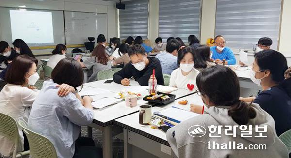 표선중학교(교장 현연숙)는 제주형 자율학교(IB학교)의 안정적인 기반 구축과 교원 전문성 신장을 위해 외부 전문가를 초빙해 IB(MYP) 실행을 위한 교사 연수 활동을 전개하고 있다.