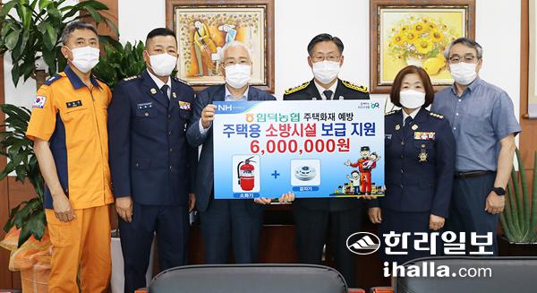 함덕농협(조합장 현승종)과 동부소방서(서장 조승혁)는 지난 24일 농협 조합장실에서 관내 취약계층의 주택화재 예방을 위한 주택용 소방시설 지원 전달식을 가졌다.