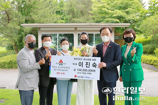 한라산CC 레스토랑 살레 이진숙 대표(제주 아너 소사이어티 47호)가 기존 1억원 기부에 이어 추가로 1억원을 기부하기로 약속했다. 누적 기부금액은 2억원이다.