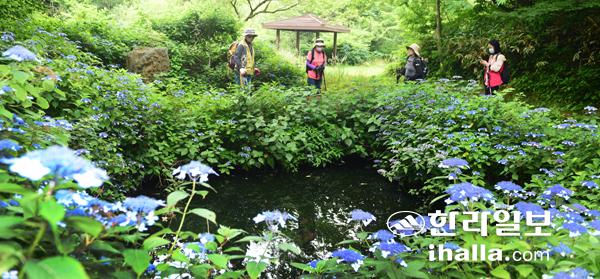 분화구 뜻하는 ‘궤’서 솟아난 궷물흐드러지게 피어난 산수국 장관시원한 삼나무 숲에선 더위 안녕