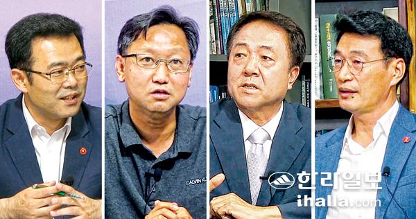 왼쪽부터 강성민 제주특별자치도의회 의원, 강호진 제주대안연구공동체 공공정책센터장, 김태윤 제주연구원 선임연구위원, 문대림 JDC(제주국제자유도시개발센터) 이사장.