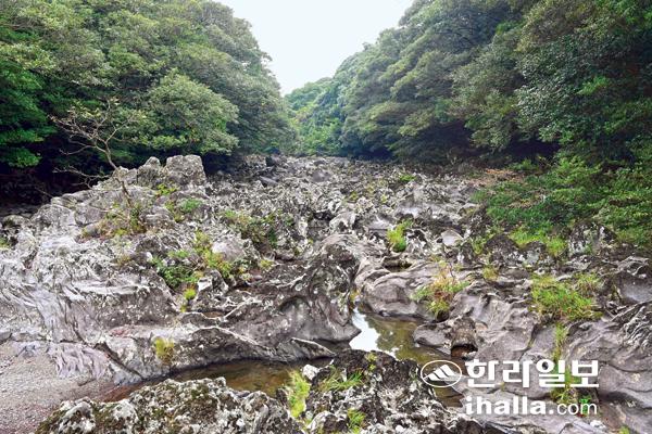 잠시 휴식을 가진 후 팔각정을 지나 서중천으로 향했다. 서중천은 서귀포시 남원읍 한남리에서 시작해 동남쪽으로 흘러 태흥리에서 해안으로 흐르는 지방하천으로 길이는 총 12㎞에 이른다. 이 곳은 제주에서 세번째로 긴 하천이며 자연경관이 빼어난 것으로 유명하다.