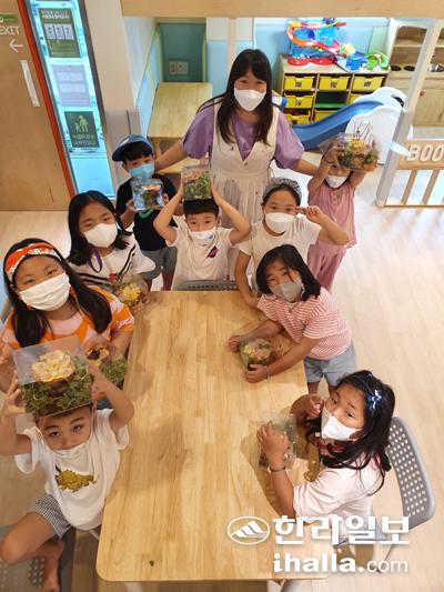 올해 여름방학 수눌음육아나눔터 20호점에 참여한 아이들이 프로그램을 수행하고 있다.
