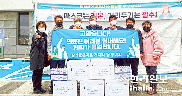 살기좋은 마을 제주시 한경면 저지리 청년회(회장 고봉찬)와 부녀회(회장 문은자)는 지난 12일 제주시 서부보건소 선별진료소를 찾아 100인분의 샌드위치와 음료 등 70만원 상당의 간식을 전달했다.