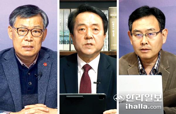 왼쪽부터 진기옥 제주도 물정책과장, 김태윤 제주와미래연구원 수석연구위원, 우남칠 연세대학교 지구시스템과학과 교수.