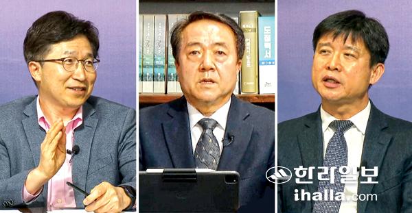 왼쪽부터 이강근 서울대학교 지구환경과학부 교수, 김태윤 제주와미래연구원 수석연구위원, 김진근 제주대학교 환경공학과 교수.