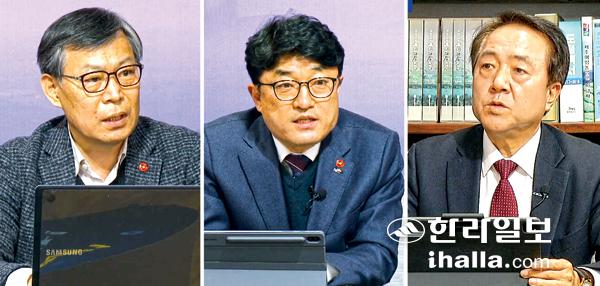 왼쪽부터 진기옥 제주특별자치도 물정책과장, 서상기 한국농어촌공사 제주지역본부장, 김태윤 제주와미래연구원 수석연구위원.