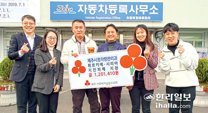 제주시 차량관리과(과장 현종배)는 지난 3일 제주시차량관리사업단 등록사무소 앞에서 튀르키예·시리아 지역 지진피해 지원을 위해 사용해 달라며 십시일반 마련한 성금 120만1410원을 제주사회복지공동모금회(회장 강지언)에 기탁했다.