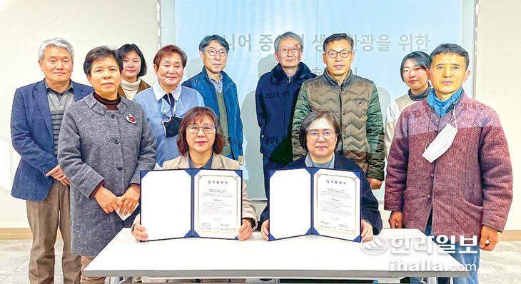 사회복지법인 섬나기 제주시니어클럽(대표 김효의)과 생태관광지원센터(센터장 고제량)는 6일 제주시니어클럽 교육실에서 업무 협약을 체결했다.