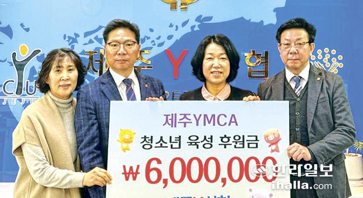 제주Y신용협동조합(이사장 여혜숙)은 15일 제주YMCA(사무총장 송규진)에 청소년 육성기금으로 600만원을 기탁했다. 이날 제주Y신협본점에서 열린 후원금 기탁식에서 여혜숙 이사장은 "제주지역 청소년들이 미래 제주 사회를 이끌어 갈 지도자로 건강하게 성장할 수 있는 작은 씨앗이 되길 바라는 마음에서 후원기금을 지원했다"고 전했다.
