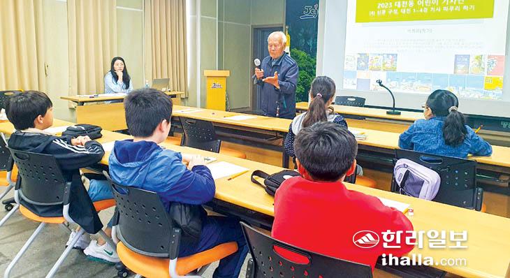 서귀포시 대천동주민자치위원회(위원장 이좌형)는 지난달 29일 대천동주민센터 회의실에서 대천동 어린이 기자단 10여명이 참여한 가운데 4회차 기자단 활동을 실시했다.