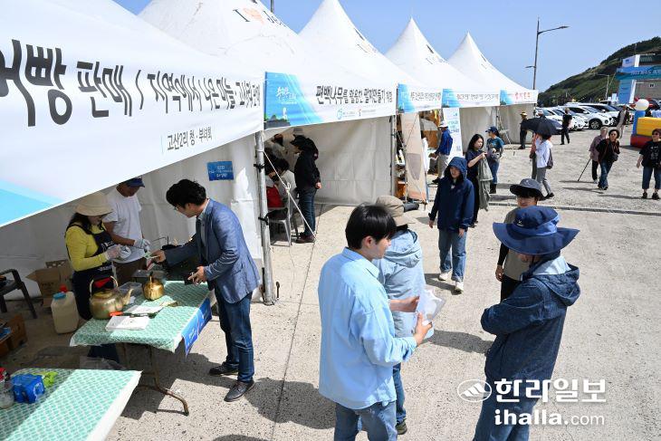 수월봉 지질트레일 행사장에 마련된 체험 및 홍보 부스. 이상국기자