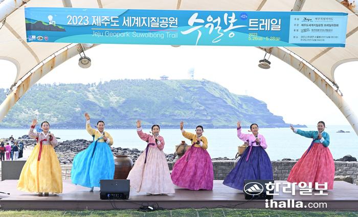 26일 제주시 한경면 수월봉에서 진행된 \\\'제12회 수월봉 지질트레일\\\' 개막식 축하공연. 이상국기자